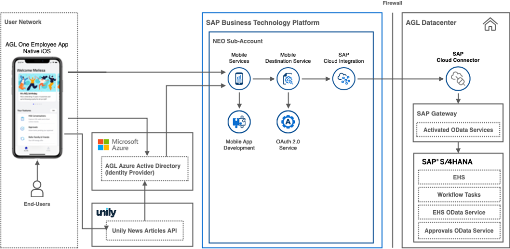 AGL was focused upon creating a highly engaging mobile experience for their employees to improve productivity and engagement. The partnership between AGL, Apple, SAP, and Bourne Digital created an integrated and scalable solution that extended their investment in SAP S/4HANA with the agility of SAP Integration Suite and SAP Extension Suite. It has been a wonderful innovation story that puts their employees at the center of the organization. The Bourne Digital SAP AppHaus Facility supported employee experience Design Thinking sessions.
